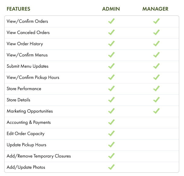 Adding additional portal users makes managing Foodja orders easier and more efficient. Each role is designed to give the appropriate level of access based on responsibilities.